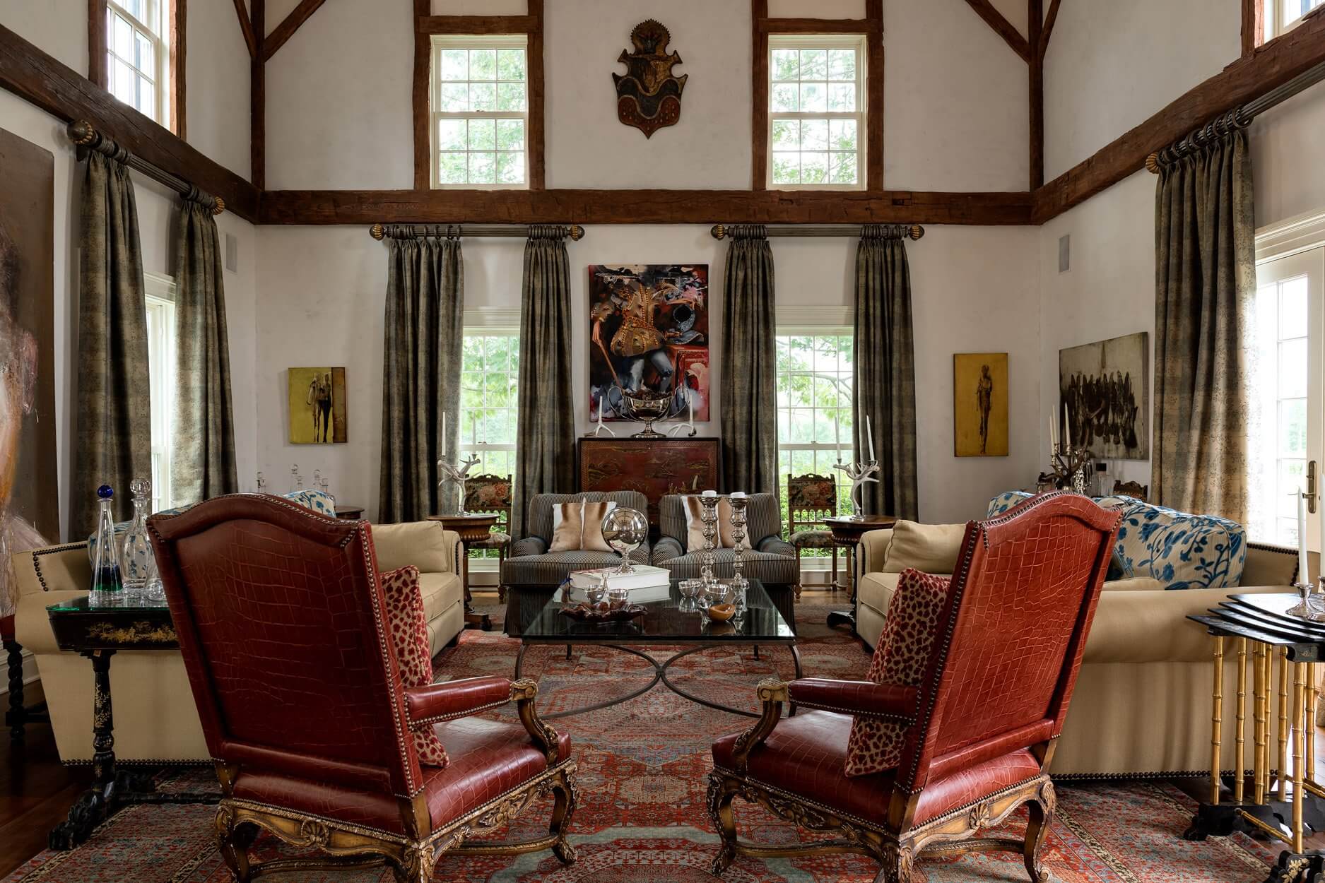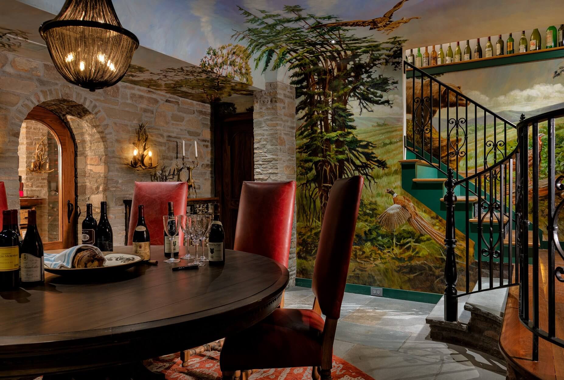 10,200 Sq FtCanoe Hill is a captivating home design that blends classic elegance with playful whimsy. The entry sets the tone with art-filled walls, timeless silk drapery, and period furniture. The dining room enchants with hand-painted silk wall coverings, luxurious drapery, and a transitional table and chairs inspired by Asian design. In the library, custom-designed furniture invites dialogue between history’s greatest personalities, creating a space where conversation takes center stage. The tasting room and wine cellar transport guests to a mystical world, with awe-inspiring wildlife scenes evoking nature’s allure. Finally, the Salon is a curated collection of beloved pieces, seamlessly arranged to foster intimate conversations in a setting of understated luxury. Canoe Hill is a celebration of storytelling, artistry, and the joy of living beautifully.